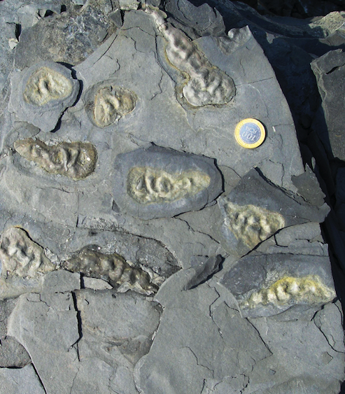 | | Chemical analyses of the Francevillian specimens suggest that they are the remains of eukaryotic organisms. Abderrazak El Albani/University of Poitiers | | In 2008 Abderrazak El Albani, now a professor of geology at the University of Poitiers in France, discovered gleaming bits of pyrite in many bizarre shapes in an exposed scrape of black shale outside the town of Franceville in Gabon. He couldn't explain how such objects existed in a bed of sedimentary rock. Since that first discovery, his team has collected more than 6,000 pieces—all of them from the same site in Gabon. They are, according to El Albani, fossils of complex life-forms—organisms made up of multiple, specialized cells—that lived in colonies long before any such thing is supposed to have existed on Earth. What they were: These organisms—if that's what they were—were unlike any life form on earth now. El Albani thinks they might belong to a lineage of colonial eukaryotes—perhaps something resembling a slime mold—that independently developed the complex multicellular processes needed to survive at large sizes. These organisms would have been an entirely independent evolution of this form of life. Counterarguments:Prominent researchers argue that El Albani's specimens are actually formations of natural pyrite that only look like fossils. They point to a well-known phenomenon of pyrite "suns" or "flowers," superficially fossil-like accumulations of minerals that occasionally turn up in sediments rich in actual fossils. Others have conjectured that the pyritized specimens are probably just the remains of bacterial mats, not complex life-forms. | | Rocks from the Francevillian Basin in Gabon are filled with gleaming shapes that have been interpreted as fossils of complex life-forms from more than two billion years ago. Abderrazak El Albani/University of Poitiers | | | | |