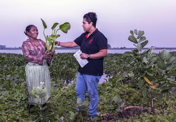 - Environmental-humanities researcher Jenia Mukherjee (right) studies the complex relationship between people, canals and wetlands in Kolkata, India. The wetlands—including the sewage-fed pond she stands in here—treat nearly 80 percent of the city's waste water naturally, but face threats of urbanization as the area's population continues to grow. In her research field, "there has long been a disconnect between natural science, engineering and social science," she says. Researchers need to combine perspectives to gain a holistic picture of wetlands, "otherwise these ponds will continue to be degraded." Nature | 3 min read